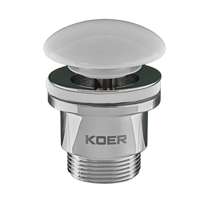 Донний клапан для раковини універсальний (з/без переливу) Koer PW-01-11 автоматичний (Click-Clack) (Біла керамічна накладка) 1 1/4'' (KR3405)