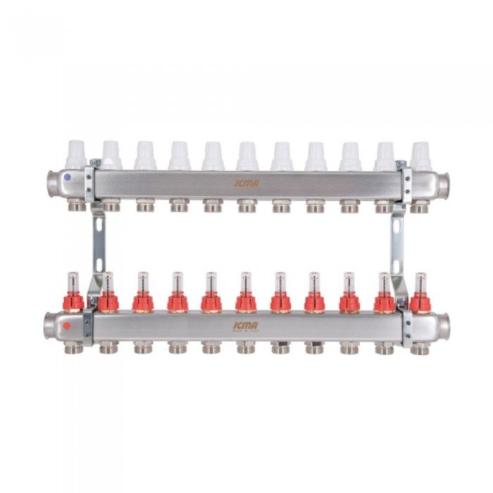 Колектор Icma № К073 з витратомірами (нерж.) 1" х 3/4" на 11 виходів