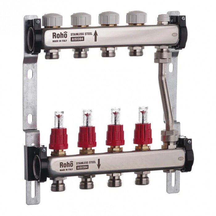 Колектор з витратомірами та термостатичними клапанами з байпасом Roho R814-04 - 1"х 4 вих. (RO0047)