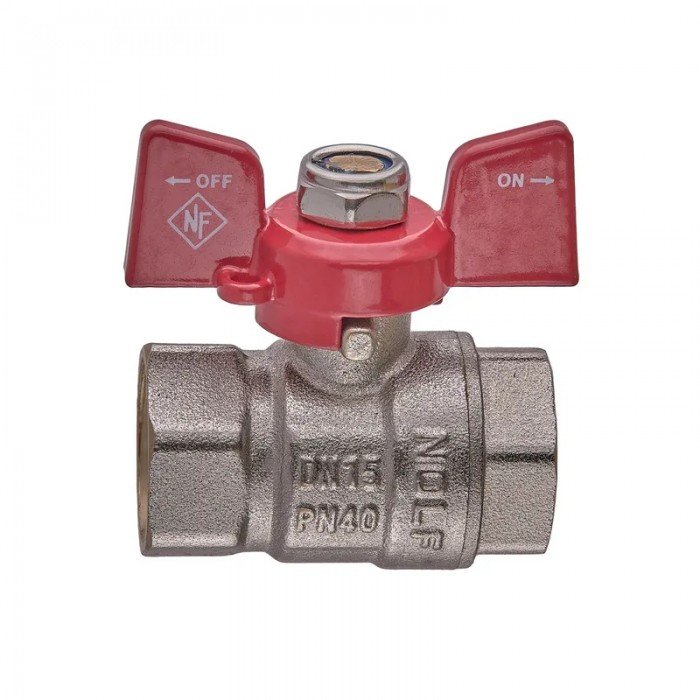 Кран кульовий Nolf classic NFC.711-06-1/2" FF ГГМ, ручка "метелик" червона (NF3131)