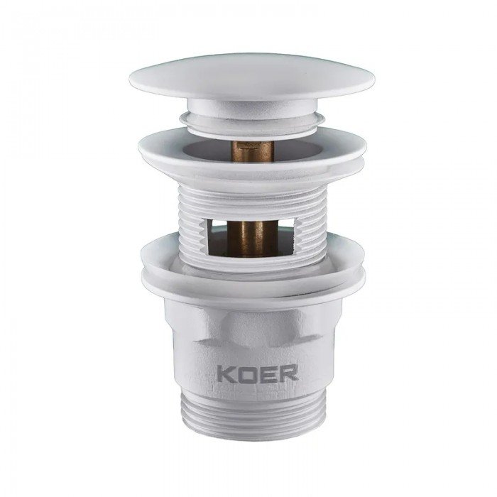 Донный клапан для раковины с переливом Koer PW-03-03 автоматический (Click-Clack) (Цвет белый) 1 1/