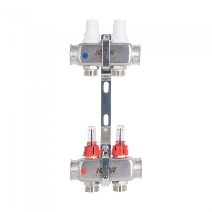 Коллектор Icma № К073 с расходомерами (нерж.) 1" х 3/4" на 2 выхода