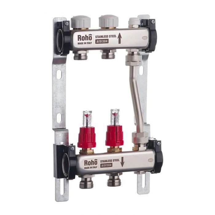 Коллектор с расходомерами и термостатическими клапанами с байпасом Roho R814-02 - 1"х 2 вых. (RO004