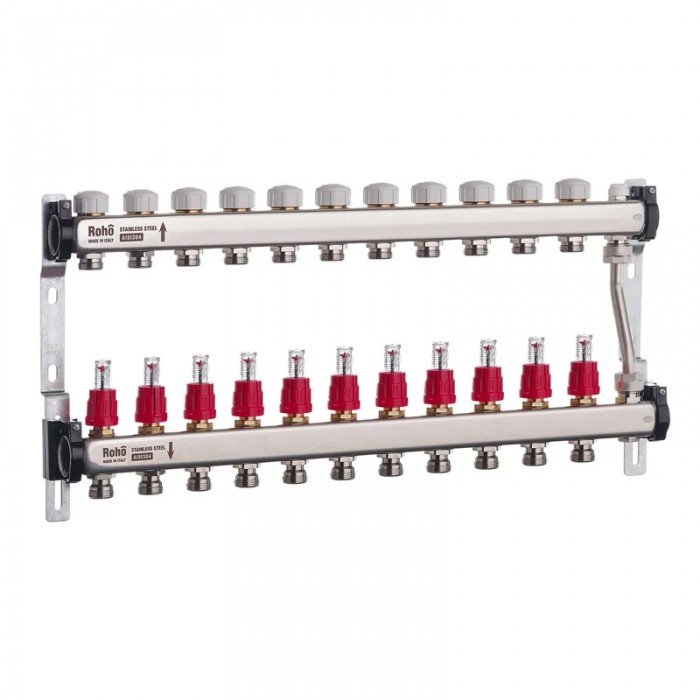 Коллектор с расходомерами и термостатическими клапанами с байпасом Roho R814-11 - 1"х 11 вых. (RO00