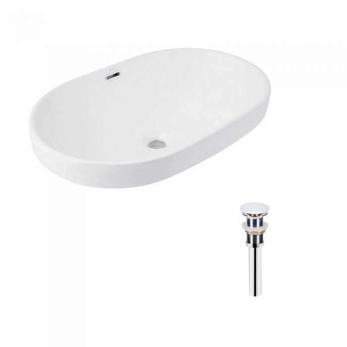 Комплект Qtap Leo: Раковина врезная овальная 590x400x170 мм White + Донный клапан PU02O