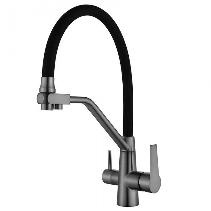Кухонный смеситель на две воды Mixxus FUL-021 Graphite Refl.Black (нерж. сталь) (MI6115)
