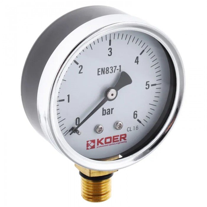 Манометр радиальный (KOER KM.610R) (0-6 bar), D 63мм, 1/4''-1/2'' (KR0204)